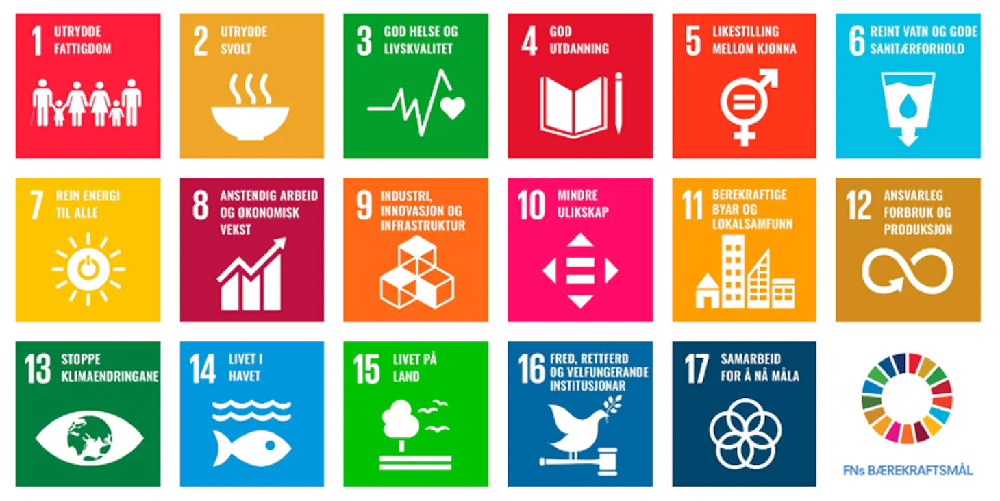 FNs bærekraftsmål består av 17 mål og 169 delmål. Målene skal fungere som en felles global retning for land, næringsliv og sivilsamfunn.