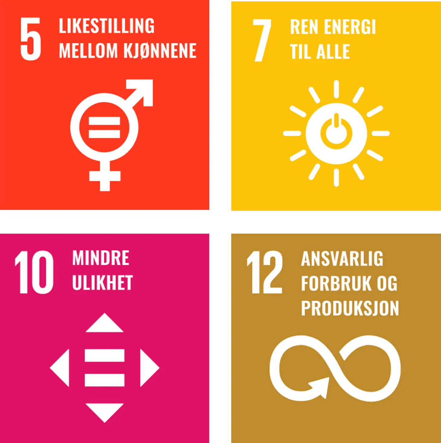 Ildfast har mange initiativer som kan knyttes til de ulike bærekraftsmålene, men vårt hovedfokus er rettet mot 4 av dem. Disse skal vi innarbeide i våre selskaper for å veilede, kommunisere og rapportere selskapets strategi, mål, aktiviteter, rutiner og leveranser.