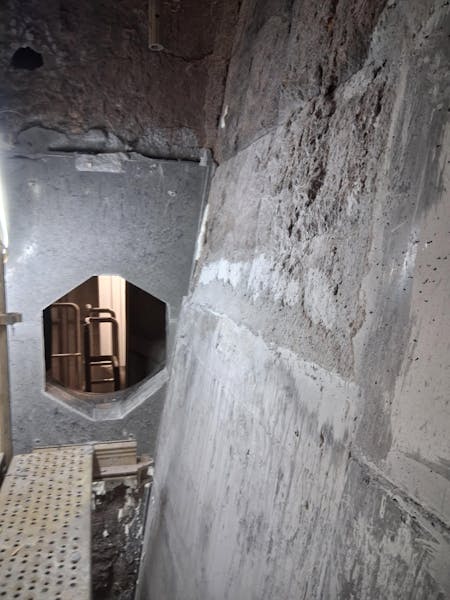 Gjennom høsten 2024 ble det gjennomført befaring og inspeksjon av det ildfaste murverket i CFB-anlegget på Skogn. Her ble det avdekket behov for tiltak på en av veggene i anlegget, murverket hadde løsnet og forankringene var synlige – dette på et kritisk punkt i anlegget.